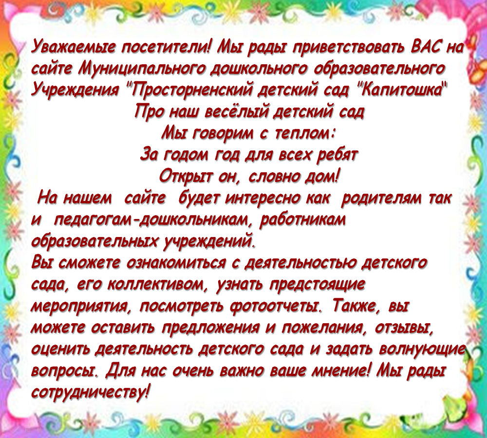 МДОУ Просторненский детский сад Капитошка